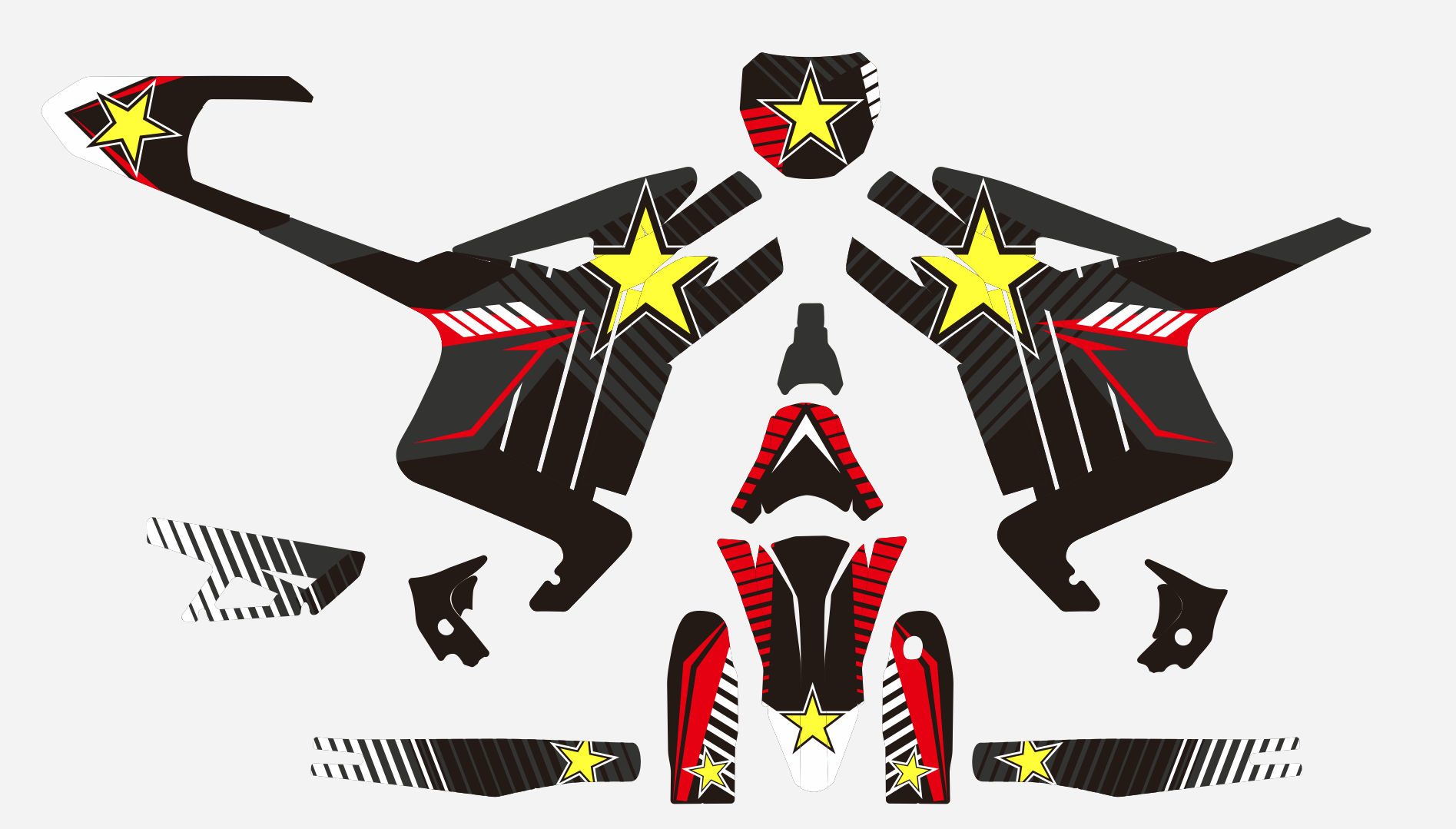 After purchasing a graphics kit, we will email you a design proof in the form of a flat layout. You can request up to two free revisions for changes. Once the proof is approved, please allow 1-2 business days for standard printing. Shipping typically takes 2-3 weeks, with a tracking number provided approximately one week after shipment.